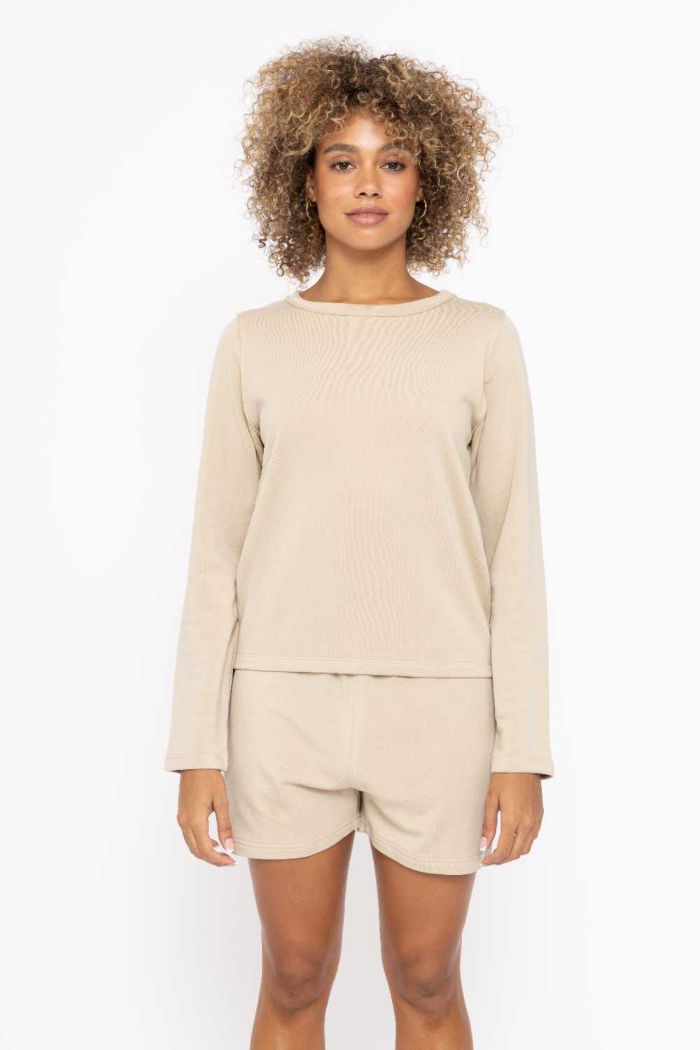 Introducing our Serene Tencel Crewneck: crafted from French terry for durability, cool touch, and elevated softness. With a relaxed fit and regular length, it's effortlessly stylish. Pair with matching shorts for a chic yet comfortable ensemble.