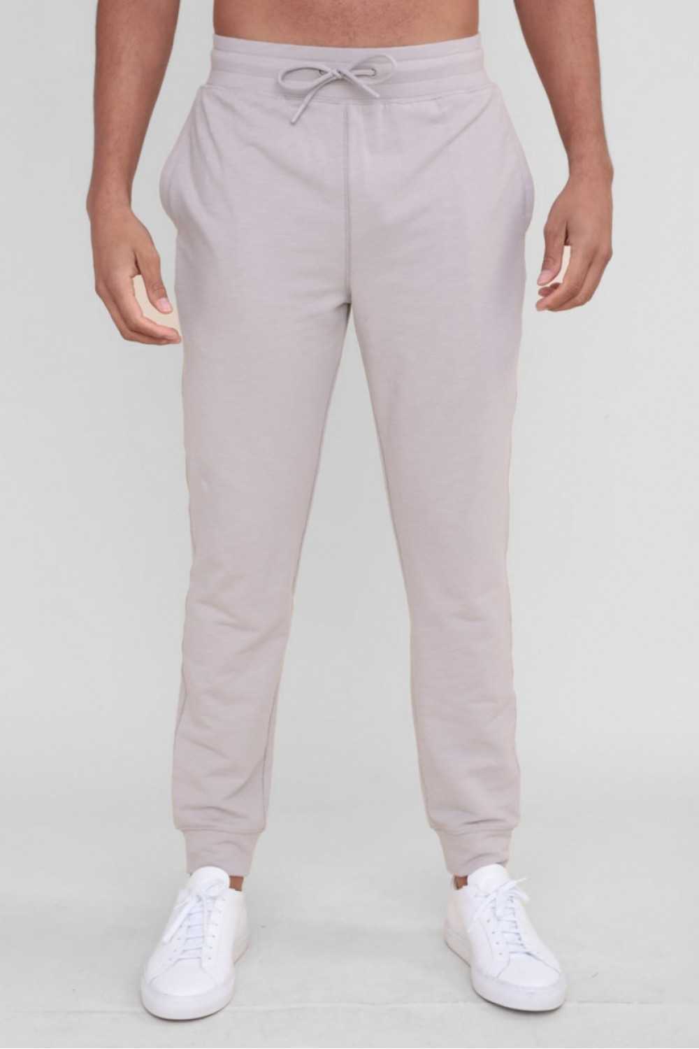 Keep it simple with these elevated joggers. They have a drawstring waistband, single zipper back pocket, and a stitch part way up the back of the legs.