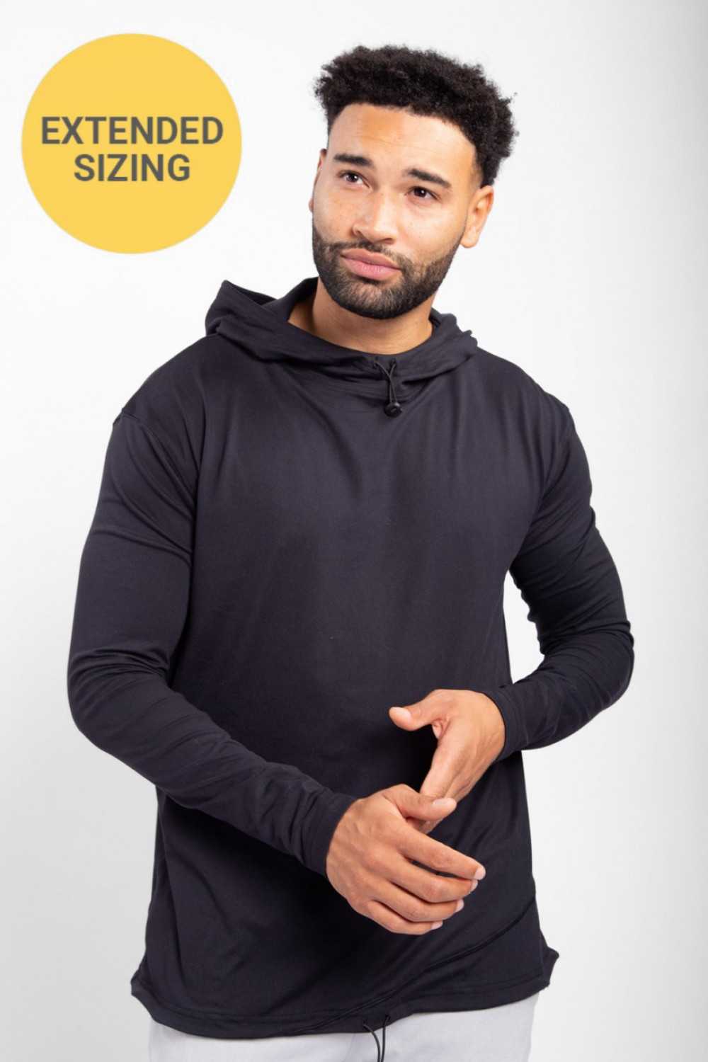 This pullover is great for lounging and also functional enough to be worn to your next workout. It is constructed with a diagonal stitch at the bottom and has two toggles. One toggle to cinch the hoodie and one to cinch the hem.