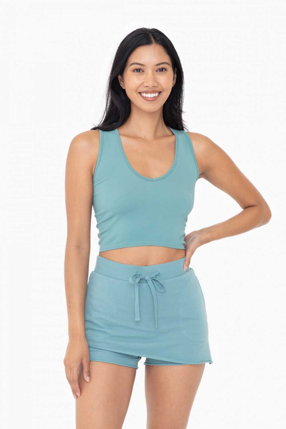 Crafted from an extra soft ribbed fabric, this top features a seamless construction, 4-way stretch, and a narrow cut v-neck for a flattering fit.
