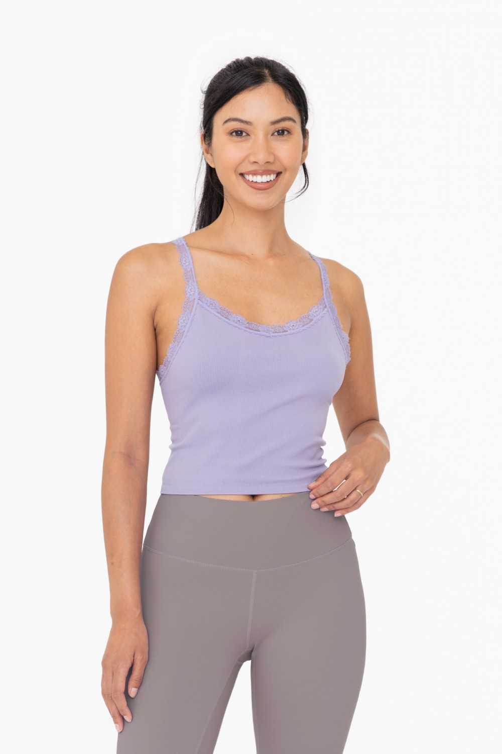 Experience supreme comfort in this tank top with our extra-soft seamless rib fabric. This 4-way stretch garment features a Y2K throwback lace trim for added style.